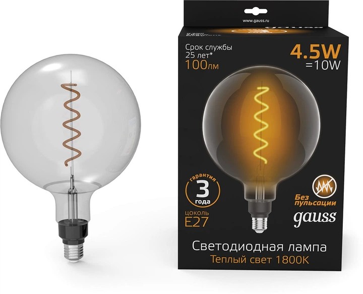 Лампа Gauss Filament G200 4.5W 100lm 1800К Е27 gray flexible LED